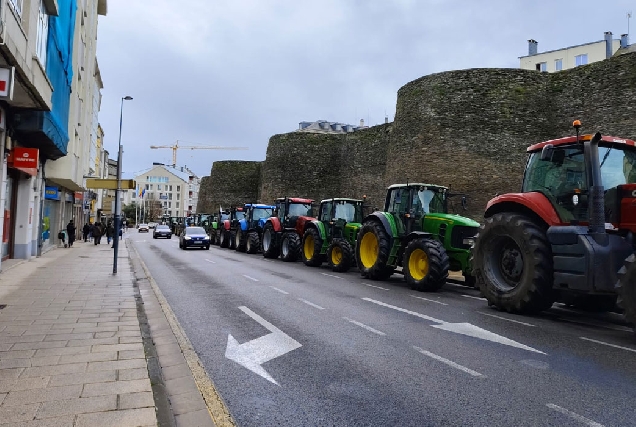 Los tractores continúan como protesta contra Mercosur en la ronda de la Muralla de Lugo